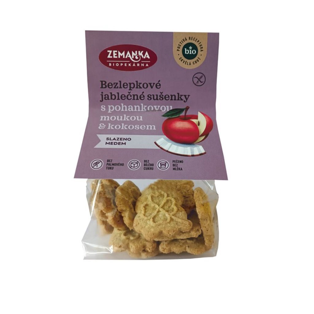 Bezlepkové bio sušienky Zemanka s pohánkou, jablkami a kokosom – zdravá chuť prírody v každom súste.