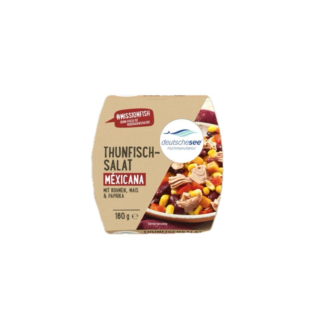 Tuniakový šalát Mexicana od Deutsche See spája kúsky kvalitného tuniaka s fazuľami, kukuricou a paprikou v pikantnej omáčke na rýchle a chutné občerstvenie.