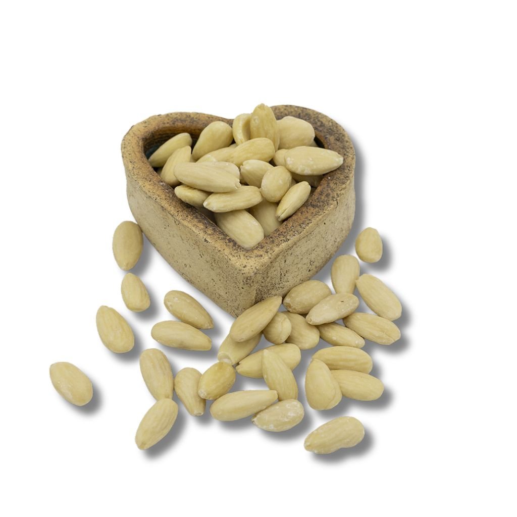 Mandličky bez kabátu - lúpané mandle veľkosti 23/25 , ktoré chutia stále rovnako lahodne, len sú bez tenkej šupky.