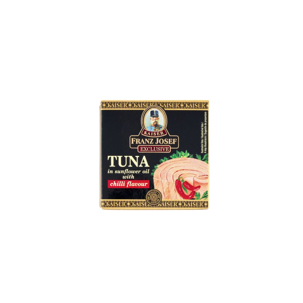 Prémiový tuniak z radu Franz Josef Kaiser Exclusive je ideálnou voľbou pre milovníkov kvalitných rýb s ľahko pikantným nádychom. Šťavnaté kúsky tuniaka sú naložené v slnečnicovom oleji a jemne dochutené chilli, ktoré dodáva chuti príjemnú ostrosť bez toho, aby prebila prirodzenú chuť ryby.