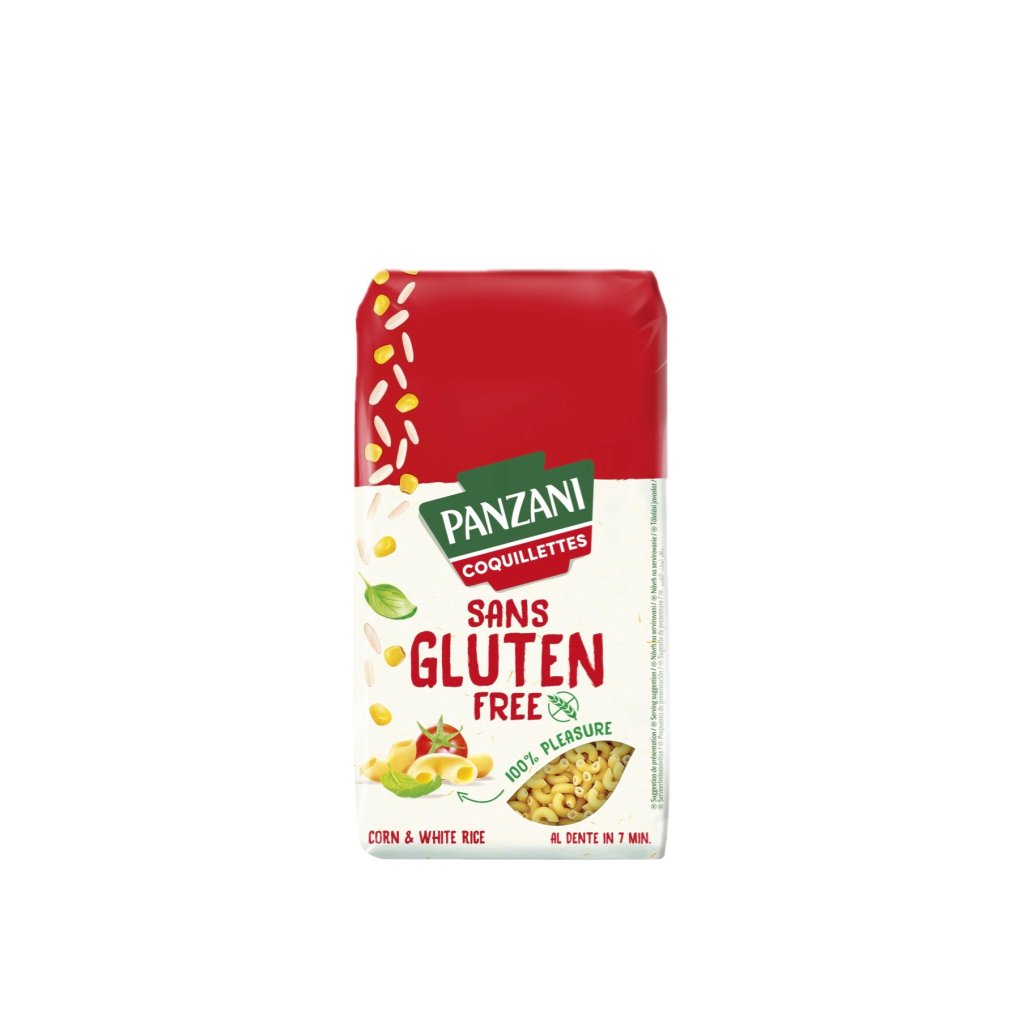 Panzani Coquillettes Gluten Free 400 g sú bezlepkové cestoviny v tvare malých kolienok, ideálne na prípravu šalátov, zapekaných pokrmov alebo s obľúbenými omáčkami. Vyrobené sú z hnedej a bielej ryžovej múky a kukuričnej múky, čo ich robí vhodnými pre osoby s celiakiou či citlivosťou na lepok.