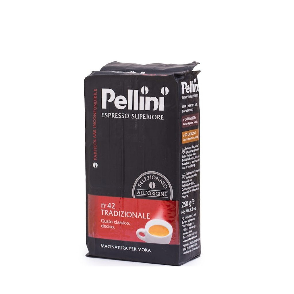 Káva Pellini Espresso Superiore Tradizionale č. 42 je veľmi zaujímavým zložením zŕn Arabica a Robusta. Podiel 60 - 40 zŕn robí zmes veľmi aromatickú a chuťovo výraznú bez prebytočnej kyslosti a horkosti. Táto tradičná káva je starostlivo pražená na stredný stupeň, čo jej umožňuje extrahovať jej mimoriadnu chuť. Potom sa zrná tradične melú a uzavrú vo vzduchotesnej nádobe.
