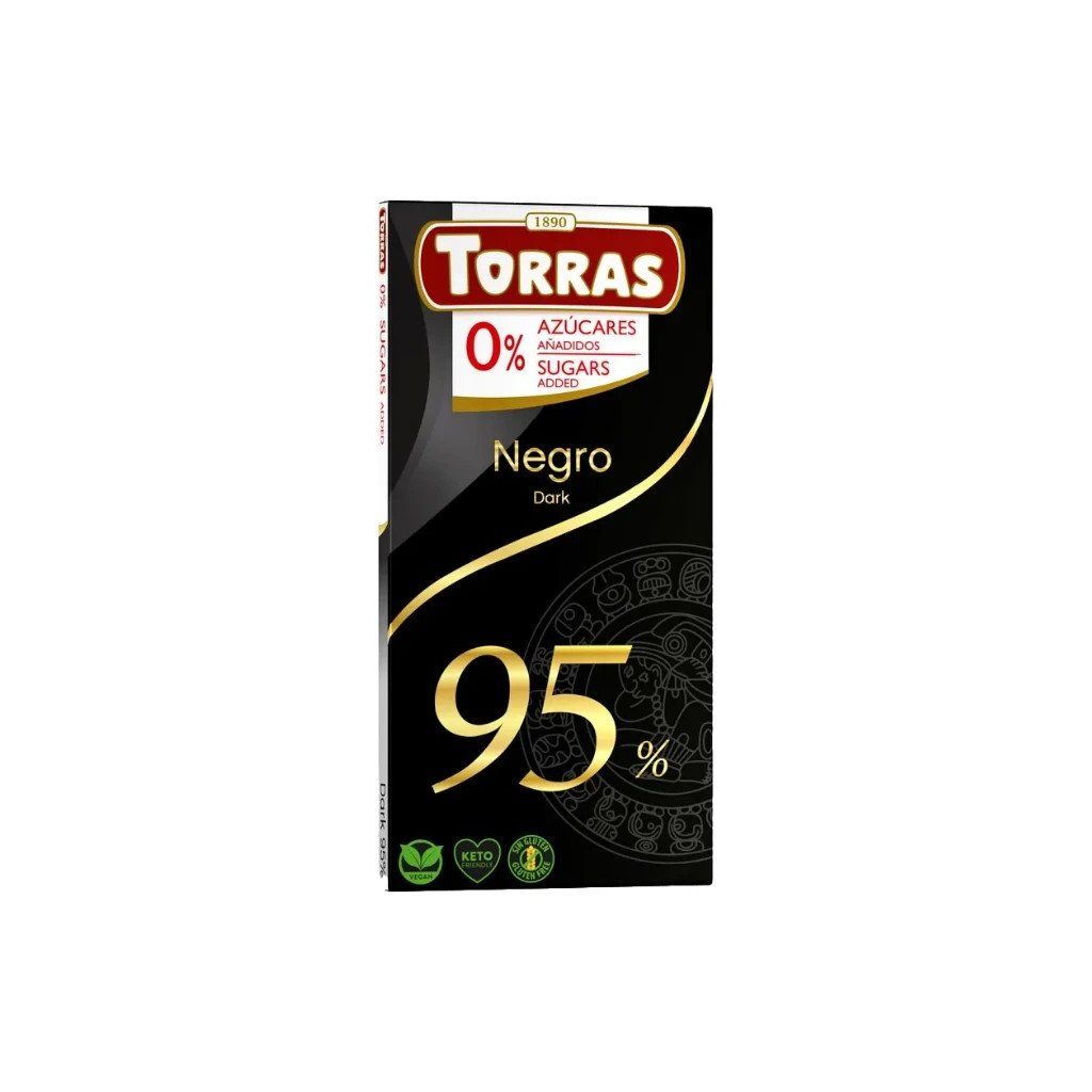 Torras horká čokoláda bez pridaného cukru s 95% kakaa ponúka intenzívnu, plnú chuť pre skutočných milovníkov kvalitnej čokolády.